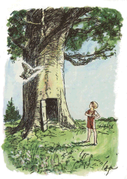 — Նա անուն է գտել նոր տան համար, — ասաց Քրիստոֆեր Ռոբինը, ծուլորեն խոտի բարակ ցողուն ծամելով։ — Այնպես որ մնացել է միայն տուն գտնելը։