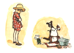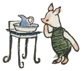 Դնչիկը, որ երբեք էլ առանձնապես լողանալ չէր սիրել ոչ տաք, ոչ էլ սառը ջրով վրդովմոնքից դողաց եւ հուսահատ քաջությամբ ասաց․