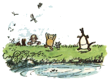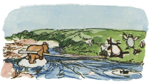 Արշավախումբը մոտեցավ գետակին, որն ուրախ պտտվում եւ գլուխկոնծի էր տալիս բարձր, քարակոփ ափերի մեջ, եւ Քրիստոֆեր Ռոբինը անմիջապես գնահատեց իրադրությունը։