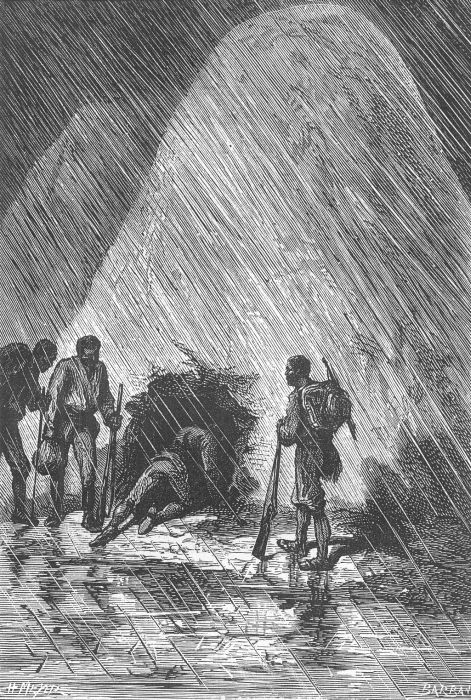 Անցքը լայնացնելով Դիկ Սենդն ու նրա ընկերները ներս սողոսկեցին, իսկ Հերկուլեսը ամենից վերջը ներս մտավ։ Այդ րոպեին անձրևը այնպիսի ուժով էր թափվում, որ կարծես ուզում էր հանգցնել կայծակը։