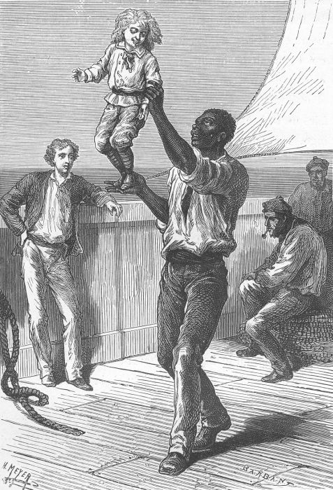 Նավապետ Հուլի առաջին գործը եղավ, ըստ հնարավորության, հարմար կերպով տեղավորել Թոմին և նրա ընկերներին։ «Պիլիգրիմի» նավաստիների դահլիճը, որ մի խցիկ էր կամրջակի վրա, այնքան փոքր էր, որ հնարավոր չէր տեղավորել հինգ նեգրերին, ուստի նրանց համար տեղ պատրաստեցին նավի առաջամասում։ Պետք է ասել, որ սովորած լինելով ծանր աշխատանքի՝ նրանք խստապահանջ լինել չէին կարող, բացի դրանից, տաք և առողջարար եղանակին այդպես ճամփորդելը նրանց կբավարարեր ամբողջ ուղևորության ընթացքում։