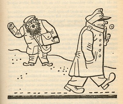 — Լիպնիցում ժանդարմական վախմիստրը ապրում էր ուղղակի բանտի մոտ, հենց ժանդարմական բաժանմունքում։ Իսկ ես, ծեր հիմարս, կարծում էի, թե ժանդարմական բաժանմունքը միշտ էլ աչքի ընկնող տեղում պիտի լինի, հրապարակում կամ այդպիսի մի տեղ, և ոչ թե խուլ նրբանցքում։ Մարդ հո ցուցանակներին չի նայում, անցնում է տնից տուն և այդպես առաջ գնում։ Վերջապես, այդ տներից մեկի երկրորդ հարկում բացում եմ մի դուռ ու ներկայանում. «Ի սեր Քրիստոսի ողորմություն արեք աղքատ պանդուխտիս․․․»։ Բայց ի՜նչ։ Ոտքերս թուլացան։ Նայեմ-տեսնեմ ժանդարմական բաժանմունք է։ Պատի երկայնքով շարված հրացաններ, սեղանի վրա խաչելություն, պահարանի մեջ մատյաններ, սեղանի վերևից թագավոր կայսրը աչքերը տնկել է վրաս։ Դեռ բերանս չբացած, վախմիստրը տեղից վեր թռավ, մոտեցավ ինձ և տուր թե կտաս մռութիս։ Ցած գլորվեցի սանդուղքի բոլոր աստիճաններով և այդպես էլ կանգ չառա մինչև Կեյժլից։ Ահա թե, ախպերս, ինչպիսի իրավունքներ ունեն ժանդարմները։