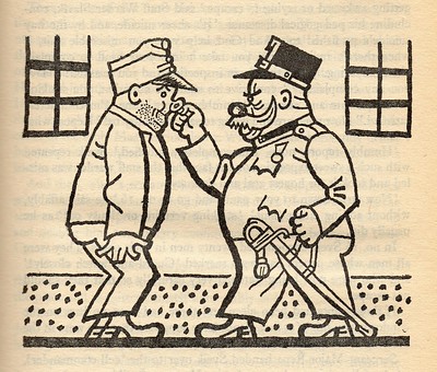 Ինքնին հասկանալի է, որ, ընդունելով Շվեյկին, բանտի վերակացու Սլավիկը նրա վրա նետեց լուռ հանդիմանությամբ լի մի հայացք։