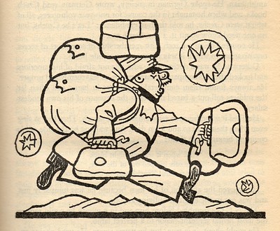 Իննսունմեկերորդ գնդում ես ճանաչում էի մի քանի այդպիսի սիրեցյալների։ Մի սպասյակ արծաթե մեծ մեդալ ստացավ նրա համար, որ կարողանում էր հիանալի տապակել իր գողացած սագերը։ Մի ուրիշը արծաթե փոքր մեդալով պարգևատրվեց այն բանի համար, որ տնից սքանչելի մթերածանրոցներ էր ստանում, և նրա պետը ամենասաստիկ սովի օրերին այնպես էր լափում, որ քայլել չէր կարողանում։