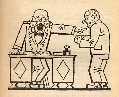 Շվեյկը նորից հայտնվեց ոճրագործի դեմքով պարոնի առաջ, որն առանց որևէ այլևայլության խստաբար ու վճռականորեն հարցրեց.