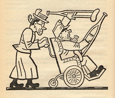 – Դա կարևոր չէ, պանի Մյուլլեր, ես պատերազմ կգնամ ձեռնասայլակով։ Դուք ճանաչո՞ւմ եք փողոցի անկյունում ապրող այն հրուշակագործին, նա մի այդպիսի ձեռնասայլակ ունի։ Մի քանի տարի առաջ դրանով իր քոպակ կաղ պապին տանում էր թարմ օդ շնչելու։ Ահա այդ ձեռնասայլակով, պանի Մ յուլլեր, դուք ինձ կտանեք զինվորական ծառայության։