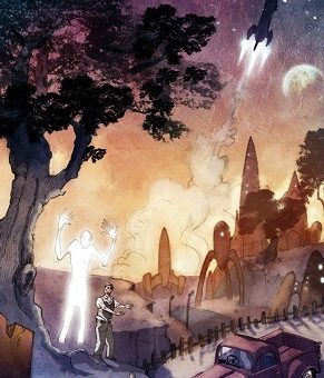 Թոմասը պարզեց ձեռքը և մտովի արդեն գոռացել էր՝ «ողջո՜ւյն», բայց շուրթերը չէին շարժվել, քանի որ դիմացինը մարսեցի էր։ Բայց Թոմասը լողացել էր Երկրի կապույտ գետերում, որի ափերով անցնում էին անծանոթ մարդիկ, օտար մարդկանց հետ սեղան էր նստել օտար տներում, և միշտ նրա լավագույն զենքը եղել էր ժպիտը։ Նա իր հետ ատրճանակ չէր վերցնում։